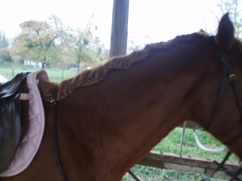 DéconnectéDire merci | Je suis allée ce we à Avignon, au salon du cheval, et j'ai vu dans un box un cheval avec des nattes magnifiques, qui formaient comme un maillage de nattes entrelacée (bon, je sais, dit comme ça, c'est pas très parlant... ). Je n'ai pas eu la présence d'esprit de le photographier, alors si vous avez des trucs et astuces pour faire de belles nattes à vos dadous, je serais curieuse de voir ça (photos SVP !). A vos peignes et APN ! |