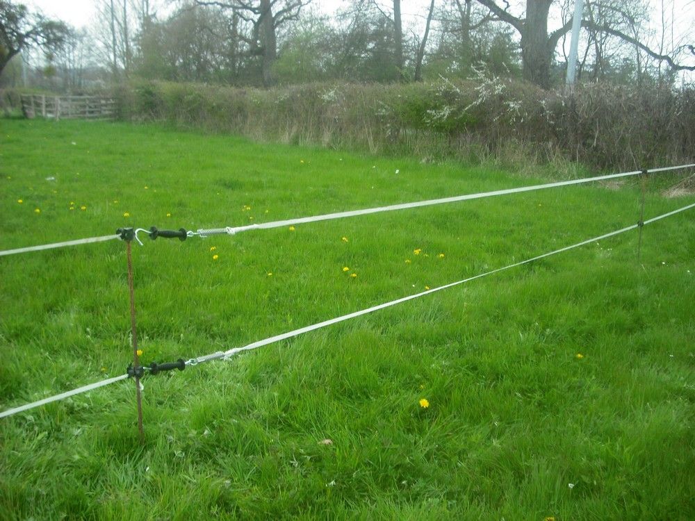 Déconnecté | nous nous avons fait un pré avec piquet en bois cimenté dans la terre , avec 4 hauteurs et le système est pareil que tigraffiti , la différence , c'est que à l'entrée du pré , il y a deux gros arbres , donc on a accroché des chez pas quoi (c'est mon père qui l'a fait) sur les arbres et on a des poignés , que l'on prend sinon , tu fait un noeud au bout du fil et l'accroche au piquet , c'est le plus simple |
