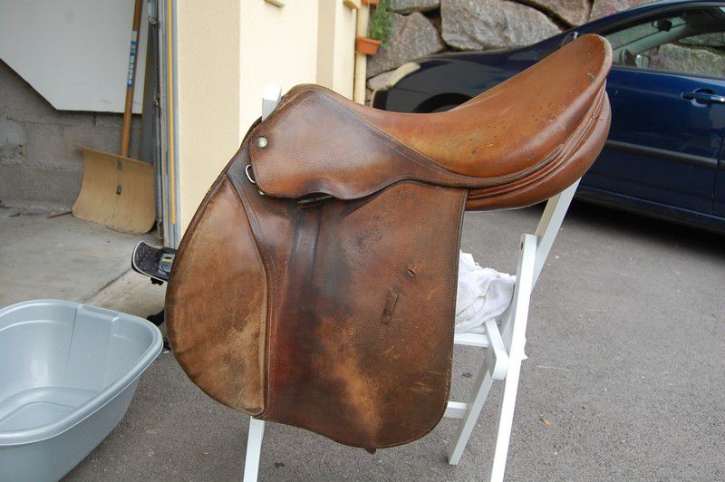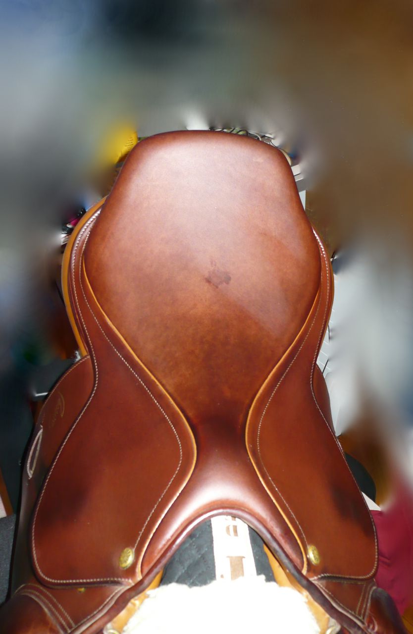 Déconnecté | Bonjour tout le monde ,alors j'aimerai avoir vos avis (lez photos arriverons à ma prochaine connexion). Y'a environ 2 ans sur une braderie j'ai trouvé une petite selle (poney, mais taille exacte?), toute esquintée, mais quel coup de coeur! Donc me voila repartie avec contre 50€. premier point: je me demande la valeur réelle qu'elle pourrait avoir? J'ai cherché à savoir sa marque, son modèle, aucune info dessus, seules les étrivières portent le nom "coursay" et là aussi je ne sais pas s'il sont d'origine. Le cuir me parait d'excellente qualité, les quartiers ressemblent à ceux de la selle"Terry" de Fee-des-fostelles. une sorte de daim (mais tout usé). Elle est brune assez claire le dessous est beige (plein de tache, j'ai supposé que c'était de la transpiration qui aurait des des oréoles. Elle est aussi toute rappée, comme si elle avait frotté sur de la pierre, et le dessous des quartiers porte des traces (3) de cutter peut être + griffes de chats. je sais.. mais Crotte! je l'adore tellement! Elle avait comme des taches (exclaboussure) de peinture, pleine de poussière et des toiles d'araigner dans les paries cachées, donc tout tout netoyé, et graissé. Ah et l'arcon se "déboite" du siège, pas très clair mais je vous montrerai, enfin..je vous met les photos bientot! |
