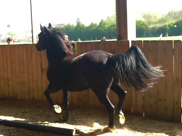 | Dire merci | sans modifier ton contact en main Et laisser passer devant surtout. Même si ça part trop vite: la réponse est là, tu as demandé une réaction vers l'avant et tu l'as. pour ça il faut laisser des rênes, si on ne modifie pas le contact de la main le cheval va répondre a la demande et se punir ensuite en se cognant contre le mors. pour apprendre a un cheval le mouvement en avant, on ne s'occupe pas de ce qui se passe devant, on ne cherche pas le contact, on ne gère pas la direction, on s'occupe juste d'obtenir le mouvement en avant. je parle bien sûr de la séance ou on prend le temps de faire une leçon de jambes, pas pour la suite lors du travail "habituel". quand le cheval connaît la leçon de jambes et l'action du stick on monte "normalement", et il ne devrait pas y avoir de réponse démesurée de la part du cheval s'il connaît déjà le stick. Message édité le 10/10/10 à 10:28 |