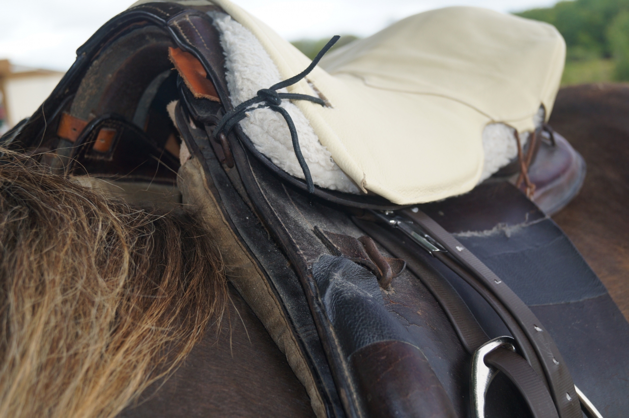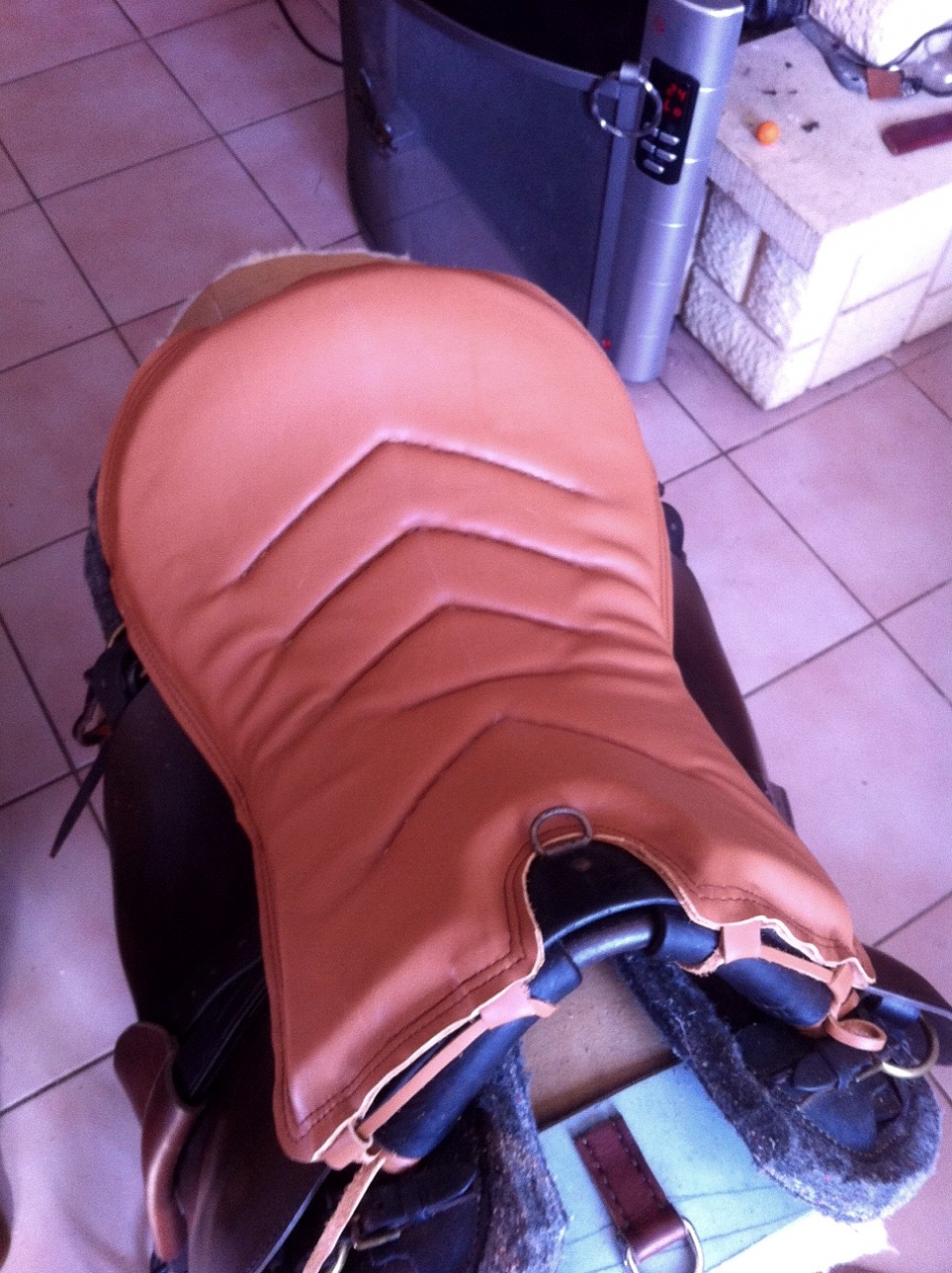 DéconnectéDire merci | La selle refaite par TH est superbe !! Du très joli travail... Je pensais que le mouton serait un peu fin pour être vraiment amortissant, mais effectivement je pourrais le doubler avec autre chose, épais mais souple pour bien épouser la forme de la selle. Ou alors, j'utilise mon protège-dos pour faire le dessus de selle ! Mais de sérieuses modifications s'imposent... C'est noté pour le tapis, je vais regarder ce que je peux commander. Et surtout un grand merci |
