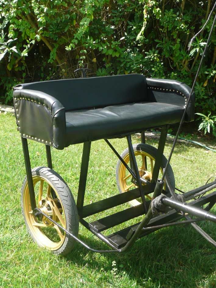 | Dire merci | moi je penses peut etre a une solution qui pourrait marcher: tu te mets sur la voiture et quelqu'un tient ton cheval a la longe le tps que tu montes et que tu te sois eloigné de la maison... sissy : merci ! voila 1 photo de la "chariotte " que je vais peut etre acheter si j'arrive a récolter assez d'argent ![]() Par rapport a ma charrette actuelle, elle a des freins et des ARMOTISSEURS !!!!! |