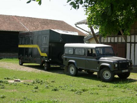 | Dire merci | Bonjour Moi pour mes marathons j'ai une petite remorque, (c'est un ancien chassis de caravane )ou je les mets dans un 2eme van que j'ai acheté d'occasion que ma femme conduit. Pour le grand break de chasse, il fait dans les 800 kg la c'est la porte voiture, pas le choix. Je voulais acheter un van avec la plateforme à l'avant mais il faut vraiment une petite 4 roues pour qu'elle tienne et quand on roule sans la caleche et avec les chevaux seulement il faut vraiment faire très attention car ça a tandence à se promener. |