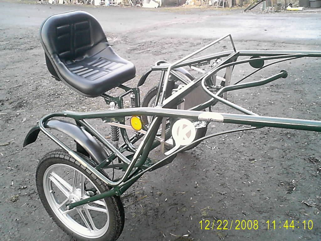 | Dire merci | Et maintenant essai sur une course officielle de 60 Km. 1er tour: nous avons désescaladé un talus, assez haut, en sable, de travers, car pas de place pour se mettre face à la pente!!!.....eh bien, le bougre......il tient la route! 2`me tour: chemins défoncés avec des trous gros comme des moutons............suspension TOP!!! Je n'ai à aujourd'hui que des éloges à faire, mais je propose tout de même 4 modifs: *** Si le cheval fait plus de 1.50, il sera préférable de réhausser le siège, pour des raisons de visibilité. *** Je mettrais volontiers un "pare-boue", (une toile tendue)... c'est comme ca que ca s'appelle?, car mes repose-pieds servaient de "ramasse-boue" projetée par le cheval. *** Il manque le porte fouet *** Il manque un appui latéral pour le siège, car en cas de GROS devers.....on glisse.......... Pour ceux (?) qui veulent se lancer (alors, ca vient???) le sulky Trail de Kühnle, tel qu'il me l'a concu, est vraiment......TOP! Je l'ai, je le garde! |