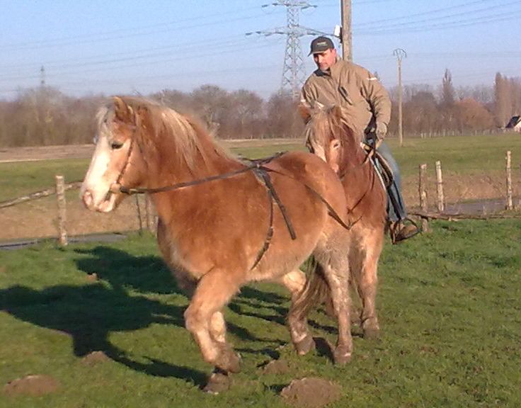 | Dire merci | Aujourd'hui, un beau soleil, et l'envie de tester une idée qui me trotte dans la tête depuis longtemps ... J'ai deux poneys qui vont vraiment bien en paire, l'un est vraiment tres fort avec une encolure superbe et l'autre est un petit génie de l'attelage, un malin qui sait tout faire avec un beau caractere : la tentation est grande de les mettre en tandem ... Alors cette après midi j'ose enfin ! Mais pour commencer, je décide de les prendre monté car je n'ai pas de deux roues ... Au final, j'ai passé un moment vraiment magique avec ces 2 là ... Une grande complicité nous unissait déjà, mais là, je vois bien qu'il s'est passé quelque chose de plus encore ... Vivement que les jours rallongent et que l'on puisse ressortir plus souvent ! ![]() Bonne et heureuse année à tous ! |