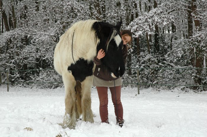 DéconnectéDire merci | SDE, cache cette photo, on va croire que tu maltraites Max et Lotus !!! non, franchement, un sac de glace ce max, comme aux iles shetland !! bon, ça n'a pas l'air de les gener les deux. Tu me fais une belle photo de Lotus en train de brouter peinard avec toute cette neige? comme ça, je la garde sur moi et je prouve à la terre entière que le mérens est très bien sous la neige avec la crinière gelée et le dos recouvert de glace. faut faire de la pédagogie quand on a un cheval de montagne ou un Thorgal. |