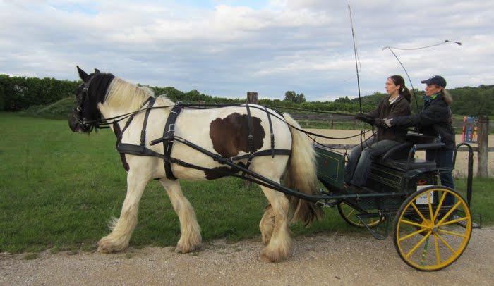 | Dire merci | En cours de réglage :![]() ![]() ![]() ![]() ![]() Une fois que ça a été pas trop mal réglé (mais je vais avoir besoin de vos lumières pour faire mieux...), nous avons marché un peu, tourné... Thorgalou super cool, comme si de rien n'était. Comme il l'était avec la luge, les rollers etc Du coup j'ai secoué un peu la voiture, les brancards... RAS... J'ai demandé à Joseph de le faire et de monter dans la voiture, d'un côté, de l'autre... Thorgalou toujours immobile ^^ Hop j'ai demandé à Joseph de s'installer et nous avons marché un peu, fait un ou deux virages larges... ![]() J'ai hésité à arrêter là-dessus mais j'ai eu envie d'aller un poil plus loin, car tout cela n'avait pas posé le moindre soucis ni le moindre doute à Thorgal... tant mieux, je sais qu'il ne faut pas attendre les soucis pour s'arrêter, mais bon, je me suis dis que vu comment ça se passait, on pouvait continuer un poil ! Joseph a pris Thorgal en longe en se faisant "absent", moi je l'ai guidé deux minutes aux longues-rênes, puis je suis montée dans la voiture et nous avons marché un peu, tourné, fait quelques arrêts comme ça. Joseph en longe au cas où, mais c'était bien à moi que Thorgal répondait ^^ mon grand n'était pas très franc, il trainait un peu mais il n'était pas du tout inquiet. Le sol n'est pas super roulant et c'est un faux plat, quand on montait on sentait qu'il manquait de convictions lol. les arrêts ça allait mais il est un peu gêné par la voiture qui le pousse, là encore il n'est pas sur de lui. Il répond à la voix, s'arrête, la voiture le pousse, il refait un pas, s'arrête, la voiture le repousse un peu, il refait un minuscule pas... et enfin on s'arrête Il n'a pas encore trop confiance en lui pour supporter ce poids à l'arrière ^^Photo au moment où je m'apprêtais à descendre (c'est pour ça que je tiens mes guides n'importe comment !!) ![]() |