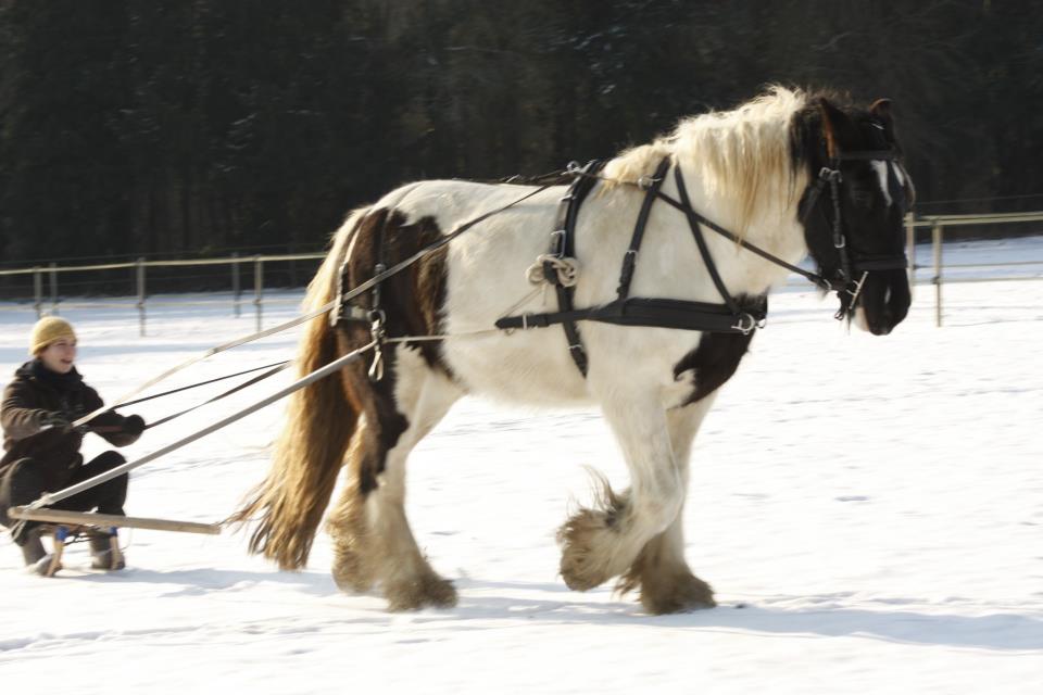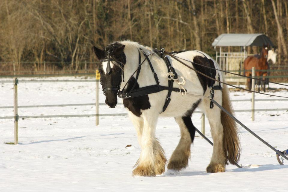 DéconnectéDire merci | Superbes photos ! Quel équilibre et harmonie ! bon ya tombé 1cm cette nuit, ça s'est gelé, j'ai pu faire la 2ème leçon de luge à Max le poney : renifler la luge, marcher derrière, marcher à côté (droite, gauche), marcher devant (je tenais la luge) il était calme, aux ordres. puis j'attelle, nickel, je tenais le poney en longe, ensuite je passe derrière en LR, impec, ensuite j'ai voulu monter mais ça glissait pas assez, trop d'effort pour le poney novice. Je suis allée à une pente douce, il m'a tirée une 40taine de mètres, j'ai arrêté car il avait pris une allure superbe, montant le dos, engageant les postérieurs, bouche douce et oreilles à l'écoute. Une super réussite pour lui ! (même si c'était frustrant pour moi ! lol) ![]() Dsl de polluter mais il m'a fait un superbe cadeau ce petit poney ! |