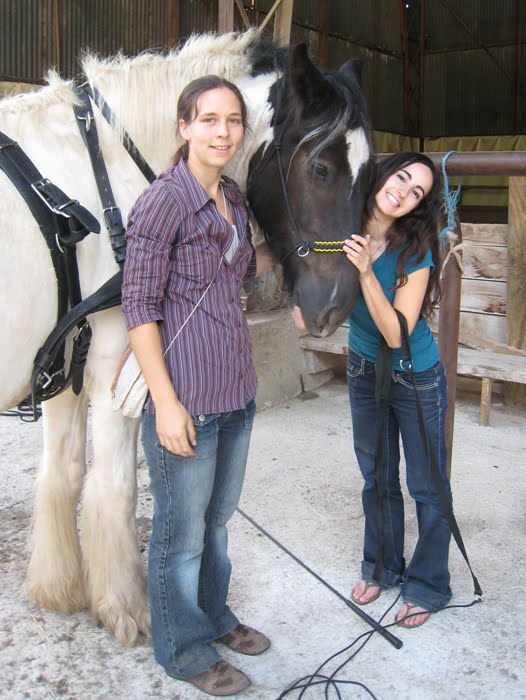 | Dire merci | Ah mince pour la longe, désolée ![]() en tous cas n'hésites pas à me dire dès que tu veux récupérer tout ça ! Alors aujourd'hui comme prévu, deuxième essai de roller joering, avec le cadre cette fois ! je suis hyper fière de mon grand qui n'a pas bronché une oreille de toute la séance - nous avons commencé par mettre le harnais - puis dans le petit manège, longues-rênes, quelques pas et directions - puis les copines ont amené le cadre et je l'ai bougé partout autour de Thorgal, avec récompense de son immobilité - puis nous avons marché, moi à la tête de mon gros, les copines portant le cadre (non attaché) derrière Thorgal, le remuant à ma demande etc - puis idem, mais cette fois je suis passée derrière aux LR - ensuite Clara est allée mettre ses rollers, pendant ce temps j'ai demandé à Anaïs de m'aider à mettre du poids sur le reculement. D'abord à l'arrêt, puis nous avons marché, et simulé le poids qui arrive sur le reculement, au moment de l'arrêt. Puis un petit reculer avec du poids derrière aussi. - et zou, on est parti faire une petite promenade ! Au pas, puis un peu de trot, quelques arrêts, dont un depuis le trot. Et une immobilité impeccable pendant les "pauses" ! Thorgalou trop chouette, cette séance aura permis de rajouter : la désensibilisation aux brancards, et la désensibilisation au poids sur le reculement ! et j'ai aussi ajouté les mots "droite" et "gauche" pour les directions, jusqu'à présent je ne m'en servais pas, je pense que Thorgal apprendra vite ^^ manque plus que : le mors, et la voiture ! et les œillères, bon j'avoue que je suis pas du tout branchée par les œillères, c'est surement idiot m'enfin ... on verra ... en tous cas merci Etienne ! ![]() ah oui, euh, pour attacher le cadre je me suis vraiment pas foulée, alors les "réglages" ça doit être du grand n'importe quoi ... (d'ailleurs j'en ai pas fait du tout..). on venait d'essayer une selle etc, ça avait déjà duré un moment, alors j'ai pas voulu y passer une plombe surtout que j'y connais rien, pis vu le "poids" que Thorgal avait à tirer ou retenir, je me suis dis que c'était pas bien important ... Etienne, ma copine est toute fine alors elle avait calée son bassin entre tes deux poignées, c'était nickel niveau stabilité lol ! Message édité le 12/08/10 à 23:00 |