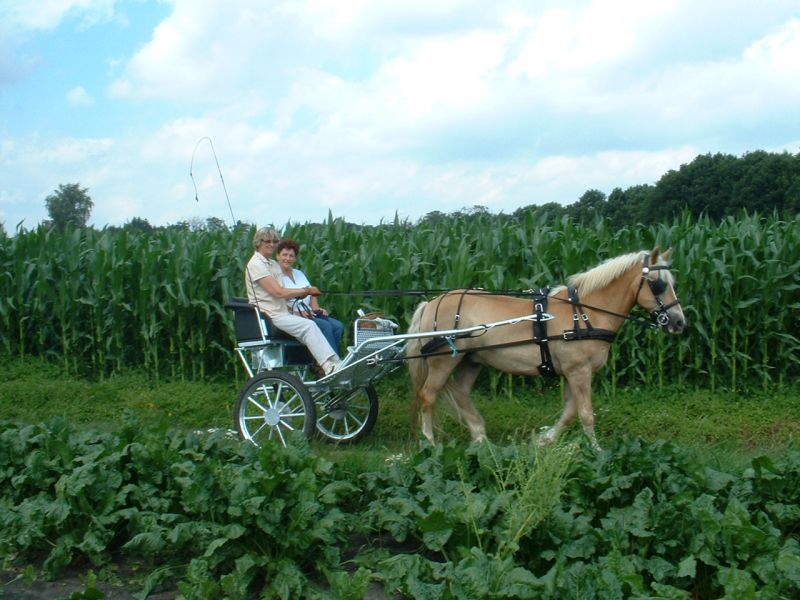 | Dire merci | Voici mes chevaux : Bairam, haflinger de 20 ans et Evita, franches-montagne de 5 ans. Tous les deux, attelés en simple ou en paire, montés en dressage et en extérieur. ![]() Mes voitures : Une wagonnete de 6 places pour l’attelage en simple ou en paire. ![]() Compte-tenu du terrain avec beaucoup de dénivelés, je la réserve plus pour l’attelage en paire. ![]() Ma deux-roues avec brancards articulés ce qui lui donne un confort inégalé avec d’autres deux-roues. ![]() C’est vraiment une tous-terrains ! ![]() Pas besoin d’une remorque supplémentaire car je peux l’accrocher derrière le van. ![]() J’habite depuis 10 ans dans le sud des Pays-Bas, à Vaals , ville frontière avec Aix-la Chapelle et à côté de la frontière belge. |