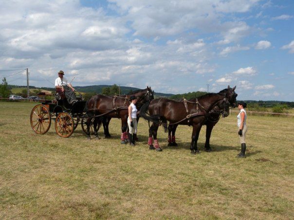 | Bon j'ose même pas vous dire le nombre de harnais des loulous ....... 4 harnais noirs super lourds en cuire ... 4 harnais havanne en cuir de présentation avec bouclerie dorée ... deux jours pour les faire avant chaque concours !!! 4 synthétiques vieux mais qui tiennent bien le choc ; pas d'entretien 4 harnais zilco tt neuf pour le marathon en compet 1 harnais a 1 en cuir et un zilco et je compte pas les selles les filets ... les brides aux moins 15 en cuir ... les guides je préfère pas compter. A et j'oublie un harnais a 4 de présentation en cuir havanne pas encore arrivé ... commandé sur mesure en hongrie mais avec la bouclerie argentée cette fois ci parcequ'on en peut plus de l'entretien !!! et que la voiture de présentation est assortie !!! Enfin bref , ben autant dire que les cuirs on les fait pas très souvent .. préfère m'occuper des chevaux moi ![]() |