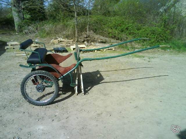 | Dire merci | Alors je l'ai eu au téléphone, il m'a dit que le harnais avait 2 ans maxi et qu'il était en bon état car conservé au sec. Il n'a pas vu de marque dessus... Il me rappelle demain soir pour me donner le diamètre des roues, et la hauteur de l'assise. Il mettra des pneus et des amortisseurs neufs dessus (car il est dans la moto cross et ce sont des pneus et amortisseurs de moto donc pratique )Voilà, on verra demain! |