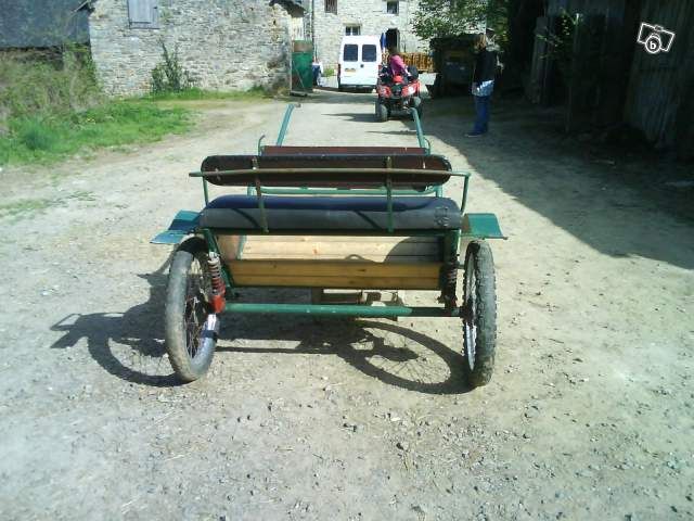 | Dire merci | Je suis du même avis que litipuce pour la qualité du harnais. Et la voiture je la trouve un peux petite pour un cheval de 1,65m, tu n'aura comme vu que le derrière de ta jument. Mon conseille, serrai de commencer a préparer ta jument, voir comme elle se comporte, en attendent un peux de pouvoir augmenter ton budget, et trouver quelque chose de mieux. Comme les deux roues sont interdite en Cc, je pense que d'ici peux on n'en trouvera a pas trop cher. |
