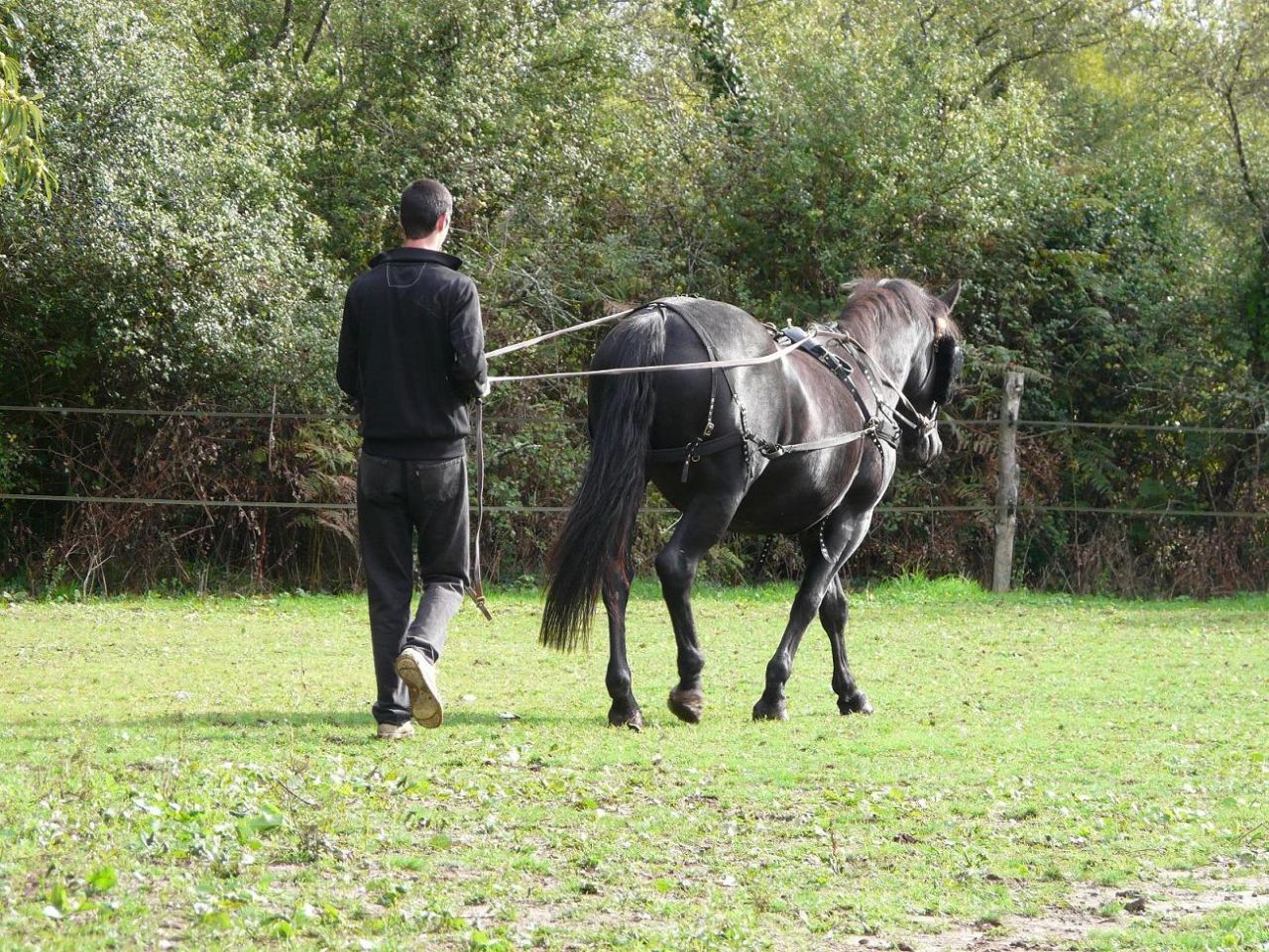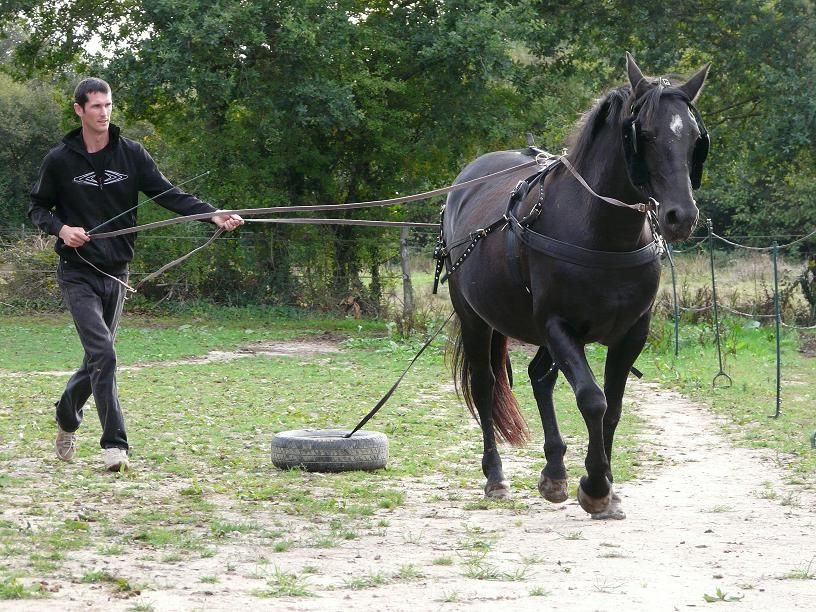 DéconnectéDire merci | Brave cheval ! Je ne vois pas bien ou les traits remontent vers la sellette ? Le palonnier il est si petit qu'il en devient invisible ? Je crois qu'il ne faut pas faire n'importe quoi. Mettre un harnais ça ne s'improvise pas et faire travailler un cheval dans ces conditions c'est prendre de gros risques. Renseigne toi avant d'essayer de faire et une fois que tu as assimilé la théorie essaye de passer à la pratique sous la surveillance de quelqu'un d'expérimenté. Là tu vas dans le mauvais sens ... |