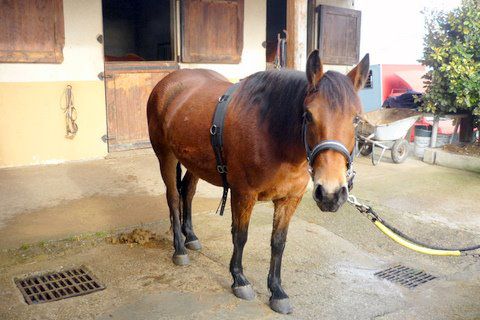 | Dire merci | je vous pésente siska, jument de mère cheval de trait par breton et père arabe. a destination pour la boucherie, le maquignon nous la dépose a l'écurie pour tenter de trouver un intéressé : "trouvez quelqu'un parce que sinon je la fais ture..." elle ne repartira pas c'est décidé!!! dès que je l'ai vu j'ai craqué elle est tellement belle et incroyablement douce! une photo? ![]() ![]() ![]() |