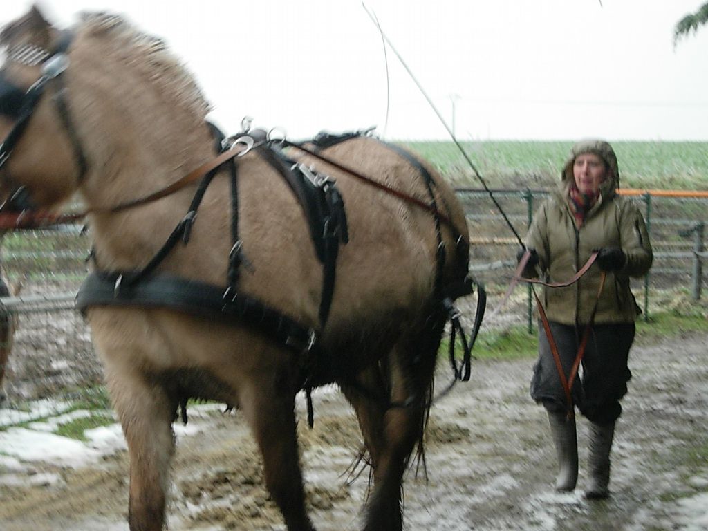 DéconnectéDire merci | Bonsoir...et Joyeux Noël à vous et vos loulous Juste pour le plaisir, quelques photos de la 1ère séance avec ma jument, elle a été extra !!! malgré le froid, la pluie verglacée... c'était hier !Re p'tite séance ce midi, mais c'était vraiment trop gelé, on n'a pas fait grand chose, juste histoire d'enfoncer le clou ... ![]() J'suis trop contente, elle réagit vraiment bien, c'est comme si elle l'avait déjà fait... Bon, on n'a fait que 2 séances, mais c'est de bon augure pour la suite ! Quelques petites questions, en vrac, avant de me renseigner davantage : sans fers + attelage = problème ? cheval plus peureux = mettre en paire directement au débourrage peut être une solution ? sortez-vous par tous les temps ? fréquence de travail pour le débourrage ? Voili, voilà !!! Bonne fin d'année à tous ... |