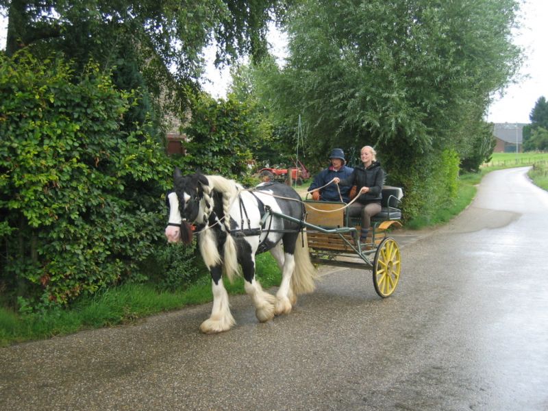 | Dire merci | le prix est très raisonnable ; je l'avais achetée 8900 FF (ttc) en 1998 au salon du cheval. J'ai encore la facture je l'ai revendue 8 ans après 500 € aux Pays Bas à la propriétaire du Irish Cob sur la photo. C'était sa première sortie et depuis elle a pris de cours, car elle n'avait jamais attelé, comme tu peux le voir avec la tenue des guides ![]() le poids est 120 kg et le banc pour trois personnes (pas trop corpulentes !!) |