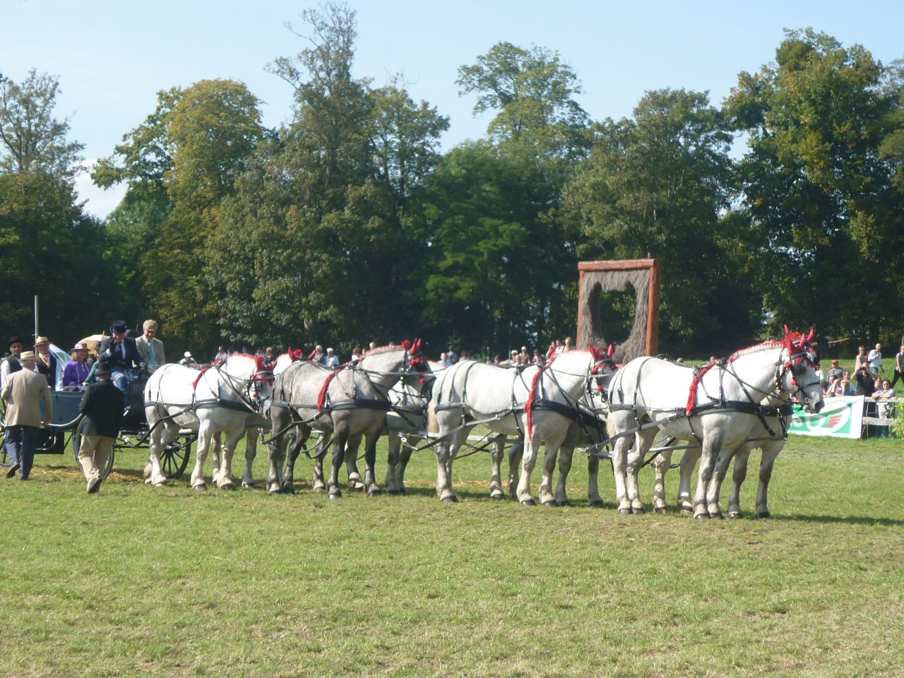 | Dire merci | Puis, les attelages de tradition. Pas mal d'équipages étrangers, surtout des Anglais. à 8 chevaux ![]() à 6 chevaux ![]() équipage allemand, de 6 chevaux tirant une voiture chargée de tonneaux de bière ![]() ![]() ![]() |