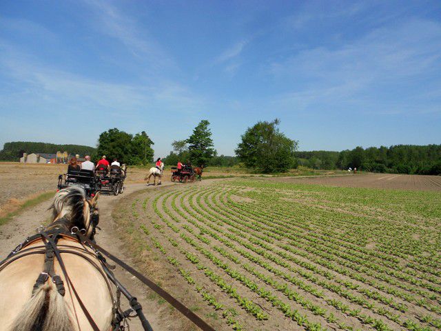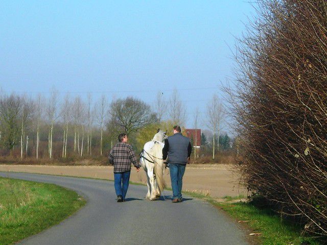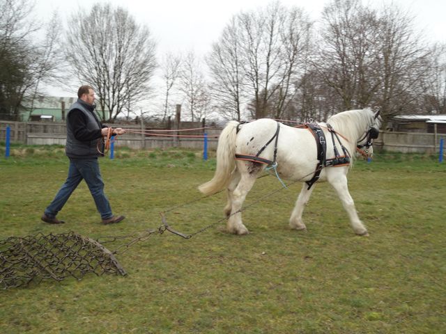 | Dire merci | Une année d'attelage ... pas à pas. J'aurais pu aussi donner comme titre au post "journal d'un autodidacte". Bien que je sois en contact avec les chevaux depuis l'âge de trois ans et que j'aie une petite expérience en tant que groom, c'est ma première véritable année de meneur. J'apprends chaque jour, avec passion, au fil des expériences, des rencontres et des lectures cet art qui ne s'improvise pas. Voici quelques photos de cette année qui a été un concentré d'attelage ![]() Janvier 2011, Fleur arrive à la maison. Elle est débourrée à la monte, a tourné un peu en manège mais ne connaît rien de la randonnée en extérieur ni de l'attelage. ![]() Février, on commence la désensibilisation de Fleur ... Je vais un peu plus loin chaque jour et ajoute petit à petit des pièces au harnais. Première expérience d'un débourrage où c'est moi qui prends les choses en main. ![]() Le harnais enfin au complet. Prochaine étape les guides puis le verdict. ![]() Février 2011 - Formation Achenbach. Why not ? ![]() Lundi 7 mars, mise au pneu. Mardi 8 mars, désensibilisation au bruit pneu + chaînes. ![]() Mardi 8 mars, petit tour sur la route. ![]() Mercredi et jeudi 9 mars, mise à la herse et travail de cette manière durant 2 semaines. ![]() ![]() Dimanche 26 mars, mise à la voiture, premiers tours de roues et première balade sur la route. ![]() Dimanche 10/04/2011. Journée sous le signe de l'attelage. Matinée à bord de l'attelage d’un ami avant sortir Fleur pour la 3ème fois. ![]() 13/04/2011. Première sortie en compagnie d'un autre attelage. 14/04 C'est parti pour la 4ème sortie. ![]() Avril/mai. Toujours et encore des randonnées. Des entraînements, des reprises de dressage et de la maniabilité aussi. ![]() Mai 2011 – passage de mon brevet LEWB. Je relève le challenge de le passer avec ma jument débourrée depuis à peine 4 mois Reprise de dressage. ![]() Maniabilité ![]() ![]() |