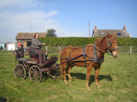 | Dire merci | Je suis encore d'acore avec Quatras. Par contre, il est jeune et pas encore fait, il faut une petite année, pour qu'un cheval d'attelage face, quelque soit le modelé, donc si tu l’attelle a cette voiture choisis bien ton circuit, évite dans un premier temps les gros dénivelé. La voiture, elle vos vraiment le coup. |