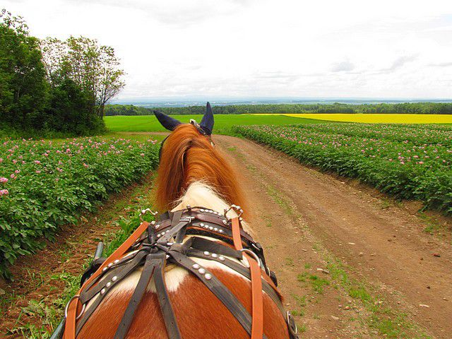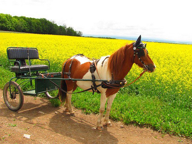 | Dire merci | Aujourd'hui, encore une balade! Mistral a une nouvelle arme contre les mouches : une belle capine! Pour qu'elle tienne bien là où il lui manque une oreille, je l'ai bourré de mouchoirs ![]() Nous sommes passé près des champs de canola en fleur. ![]() ![]() ![]() Ensuite, j'ai repéré un petit lac. J'ai détellé Mistral et je l'ai laissé jouer dans l'eau. Pas de photo de Mistral en action, mais en voici une du lac. ![]() Ensuite, de retour sur le chemin habituel, avec les champs de pommes de terre! ![]() |