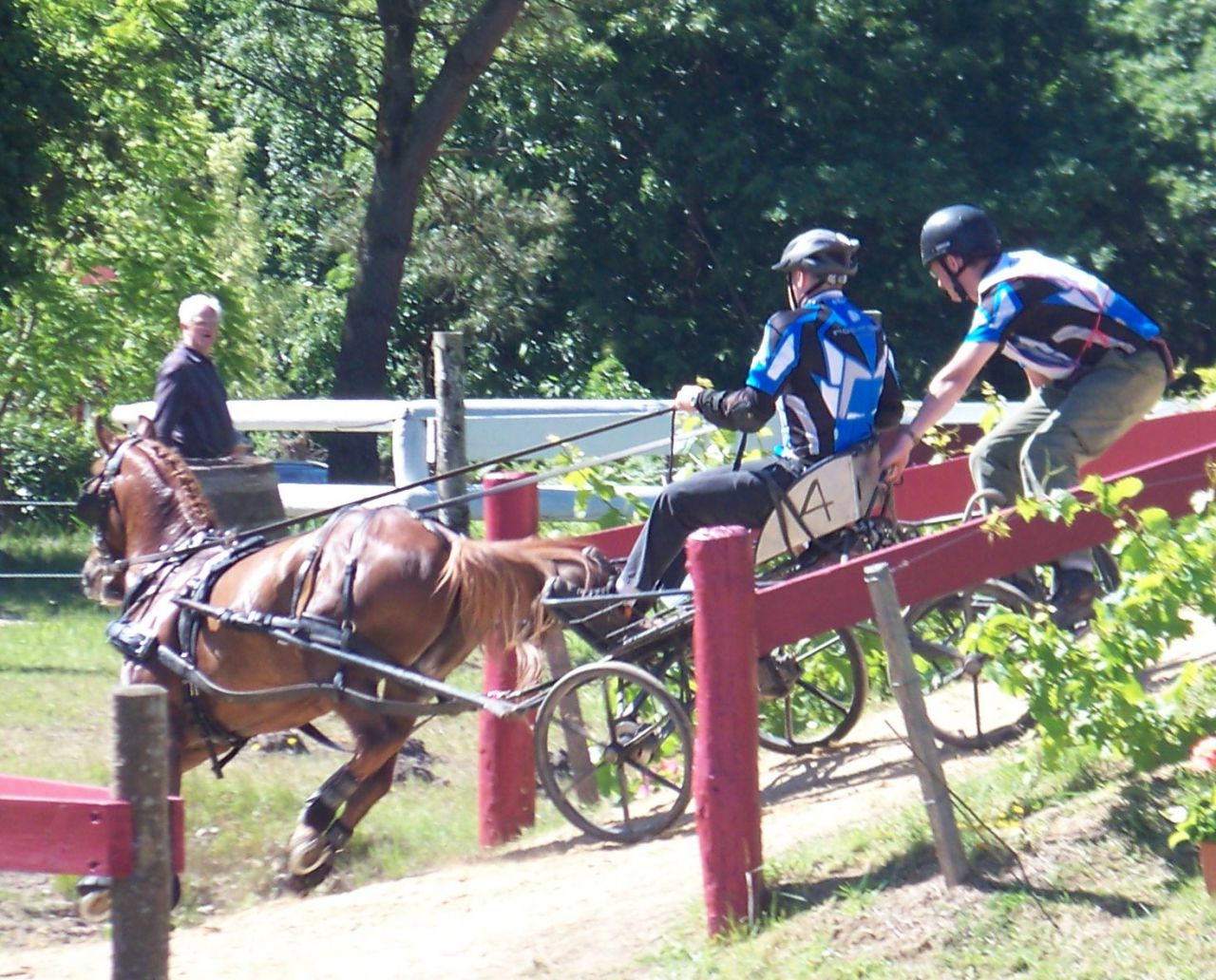 | Dire merci | Un post pour regrouper toutes nos questions et "choix" dans notre préparation pour envisager des concours d'attelage ... L'attelage de compétition demande de prévoir un programme pour assurer dans les 3 épreuves que sont : le dressage, la maniablitié et le marathon ... d'autant plus que chacune d'entre elles demande un savoir-faire spécifiques ! une petite photo pour illustrer les exigences du marathon : - pour le cheval : rapidité, mise en souffle, musculature, souplesse, résistane - pour le meneur : concentration, anticipation, lucidité (garder la tête froide), délicatesse - pour le groom : savoir sa place et la tenir (ce qui demande un entrainement aussi) ! ![]() |