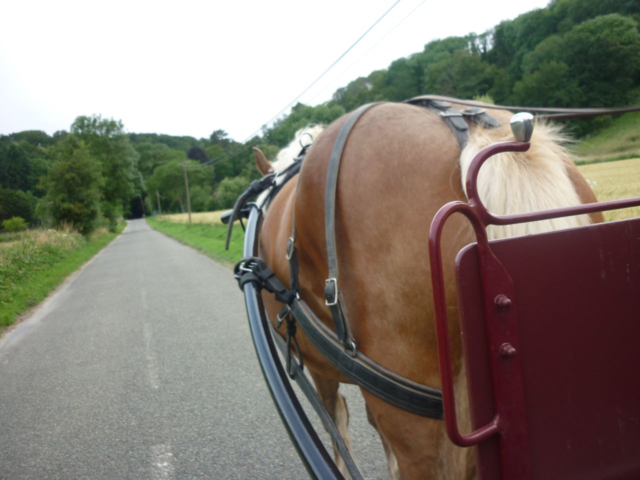 | Dire merci | Pour ma part, je trouve que 20 cm c'est beaucoup, que ce soit une deux ou quatre roues. Je n'ai jamais mesuré, l'écartement est déjà fonction de la taille (largeur) du cheval. On doit pouvoir les écarter ou les resserrer à la demande. Deux photos pour exemples. Deux roues, brancards dans les bracelets. ![]() Quatre roues, brancards dans les porte-brancards ![]() Juste vérifier que le cheval ne soit pas serré ou gêné. |