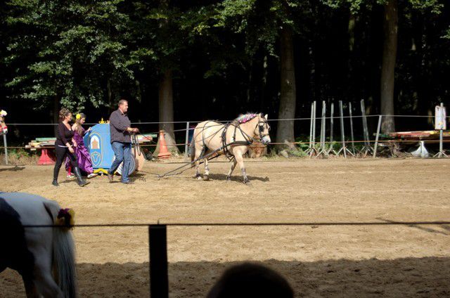 | Dire merci | On a remis ça le mois dernier. Demande d'une amie d'un manège pour prendre la tête d'une reprise de dressage avec des jeunes cavaliers. Thème : Cendrillon. Vu la taille du "carrosse" et le genre de prestation c'est à nouveau Pépite que j'ai sortie du pré.Petits préparatifs ![]() Malgré la sono, Pépite attend bien sagement pendant que j'attèle son semblant de carrosse. ![]() ![]() ![]() |