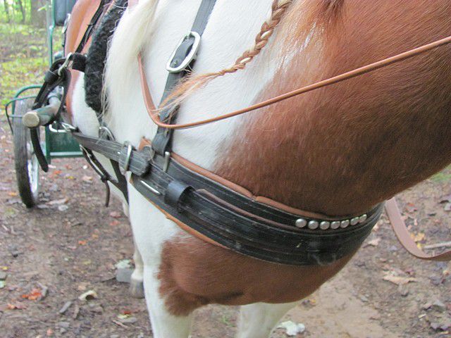 | Dire merci | bonjour à toutes et tous pour être précis et ne froisser personne la "courroie" qui passe derrière les fesses du cheval s'appelle l'avaloir et les sangles qui relies celui ci aux brancards se nomment courroies de reculement. pour ce qui est de passer les traits par dessus les courroies de reculement ce n'est pas tres académique .peut être faudrait il modifier la position du palonnier et le descendre de quelques cm de façon à ce que les traits soient légèrement inclinés(le point de fixation sur la calèche doit être plus bas que le point de pression sur l'animal) ce qui facilite la mise en avant du poney. attelagement votre |