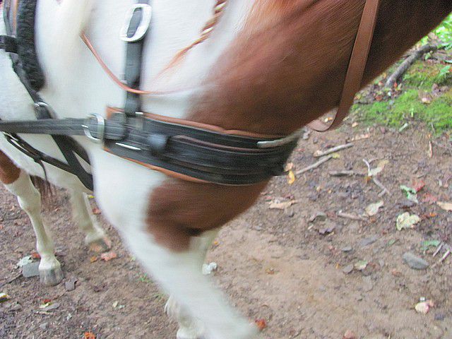 Pourtant, comme le palonnier pouvait quand même bouger, ça n'avait pas l'air de gêner mon bonhomme et le poil de ses épaules n'usait pas. J'espère qu'il n,aura pas de séquelles au niveau de l'articulation...