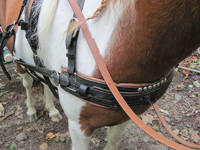 | Dire merci | je me demande si ce n'est pas parce que le palonier de ta voiture est trop haut, les trait tire la bricole vers le haut du coup elle descend sur les épaule ? Je sais pas c'est juste une supposition mon poney avec son ancien harnais et voiture, j'avais le même soucis, mais la bricole remontait pas : ![]() |