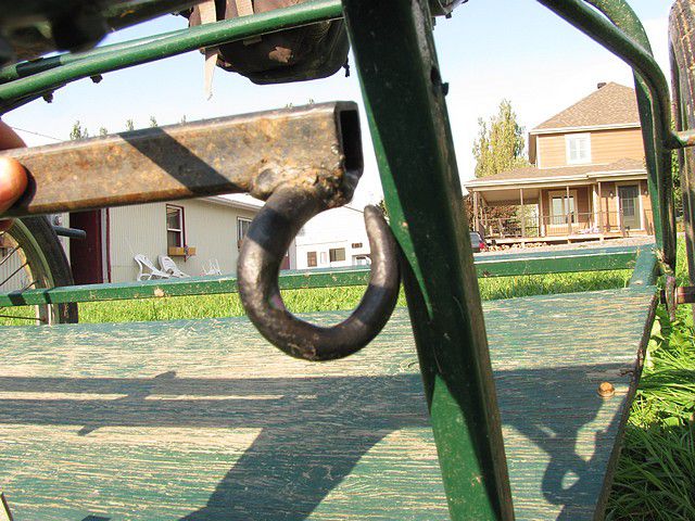 | Dire merci | Bon, je suis vraiment fière de moi Je crois bien avoir trouvé un moyen de descendre mon palonnier finalement! Il me reste à l'essayer avec l'attelage, surotut pour voir si les traits arrivent bien, car j'ai l'impression qu'ils n,arriveront pas totalement droits.Alors voilà, j'ai seulement inversé le palonnier sur la barre de son attache. Voici le "avant" ![]() Et le "après" ![]() Les extrémités du palonnier touchaient le squelette de ma voiture... ![]() Donc, j,ai légèrement limité leur rotation avec de petites cordes pour éviter les chocs. ![]() Et j'ai enlevé la planche de bois pour la rendre moins haute (je la coupe ce soir chez moi et je vais la reposer demain pour l'essai!) ![]() En voyant les photos, j,ai réalisé à quel point ma voiture avait besoin d'un sablage et de peinture! Tant qu'à être dans les rénovation! Dites moi ce que vous en pensez! |