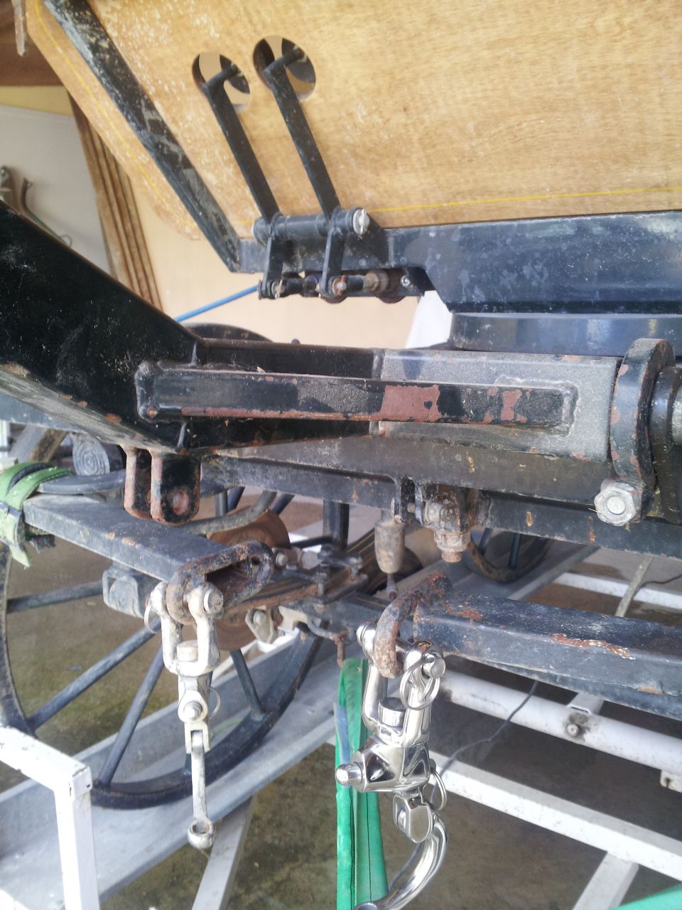 | Dire merci | Au contraire ... Il ne manque rien pour un fonctionnement normal : le timon est suspendue par la piece de section carrée dans laquelle passe la grande goupille ... Il manque juste une grosse chaine pour empêcher le timon de se soulever trop lors des reculés ! Autant dire qu'elle est inutile dans 99% des cas ... Coucou Sissy ! La forme ? |