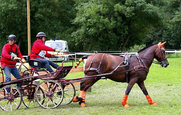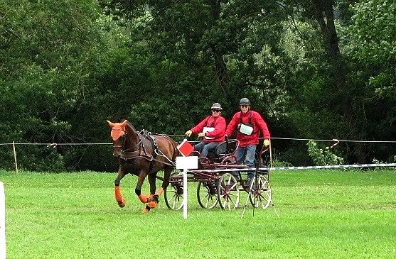 | Dire merci | Mon mari voulait comme les autos écoles mettre une pancarte, "cheval école", mais je ne suis pas sur que les utilisateurs de la routes comprennent. ... Non les juments ne seront pas attelée ensembles, elles ont des allures trop différentes, c'est du presque "9klm/h" pour l'une au pas et tout juste du "6klm/h" pour l'autre, c'est pareilles au trot, il y a peux être qu'au galop quelles pour être ensemble, mais bon je ne me vois pas ... que galoper ... bien que ... . ... Je pense que la jeune vas surtout faire balades rando (comme celle quelle a fait le semaine dernière)cette années, pour apprendre le vie, et si tout va bien peux être un Cc début Aout, mais là je ne suis pas encore sur, la saison 2014 elle devrait faire doucement commencer sa carrière de cheval de Cc. A propos de Cc, nous étions en Cc ce WE et si il y a 15 jours je me posais la question savoir si j'allais ou pas d'arrêter les Cc avec Quille, elle m'a fait prendre ma décision. elle a été génial, un dressage a 55,76 Pts, alors que d’habitude c'était plus tôt 76 Pts. Une mania (combinée) dans le temps a trois boules (mais de ma fautes), jument prête a obéir au moindre de mes demandes, souple changent de pieds a chaque changement de directions, les deux obstacles fait tout au galop. le marathon, ( rendu très difficile, car très humide, voir inondé par endroits) ma jument a fait tout les obstacle au galops, et même des demi tour très serré, elle est rentrée presque fraiche et n’ayant pas perdu ou presque un gramme. bon maintenant, il faut que je règle quelques petit défaut que j'ai et tout serra parfais. Voilà, ... donc je continu encore cette année. |