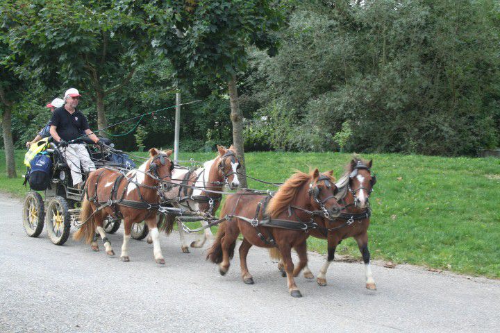 que l'on voit sur beaucoup de rassemblements avec sont attelage à 4 shetlands