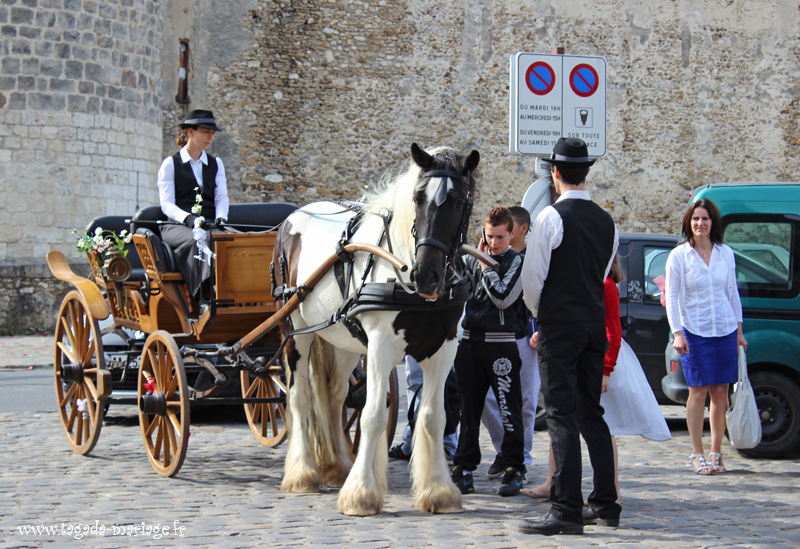 | Dire merci | C'est vraiment super !!! C'est toi qui décore la voiture, c'est pas les mariés ? C'est génial qu'il ai aussi bien supporter tout le vacarme du départ, mais tu ne pourrais pas prévoir une petite clause dans le contrat qui dit qu'il faut éviter d'abuser sur le bruit ? Parce que les conserves derrière les voiture alors que les mariés sont dans un attelage, je trouve ça osé ! En tout cas, ça te fait pleins de nouvelles photos pour ton site ! Tu as demandé le fait de pouvoir les utiliser pour ta pub ? Parce que franchement, elle mettent vraiment bien l'ensemble en valeur ! |