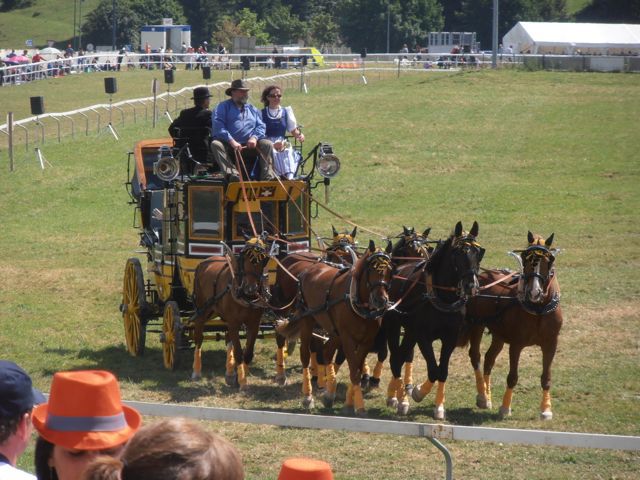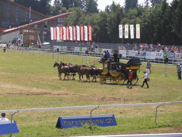 | Dire merci | Je me suis toujours demandé pourquoi dans ce type d'attelage alpin, les 6 chevaux étaient souvent attelés à l'Evêque plutôt qu'en team. Peut être parce que la diligence est pratiquement autant large que 3 chevaux de front donc pourquoi avoir en plus un attelage long et que dans certains cols alpins un team aurait des difficultés a prendre les virages |