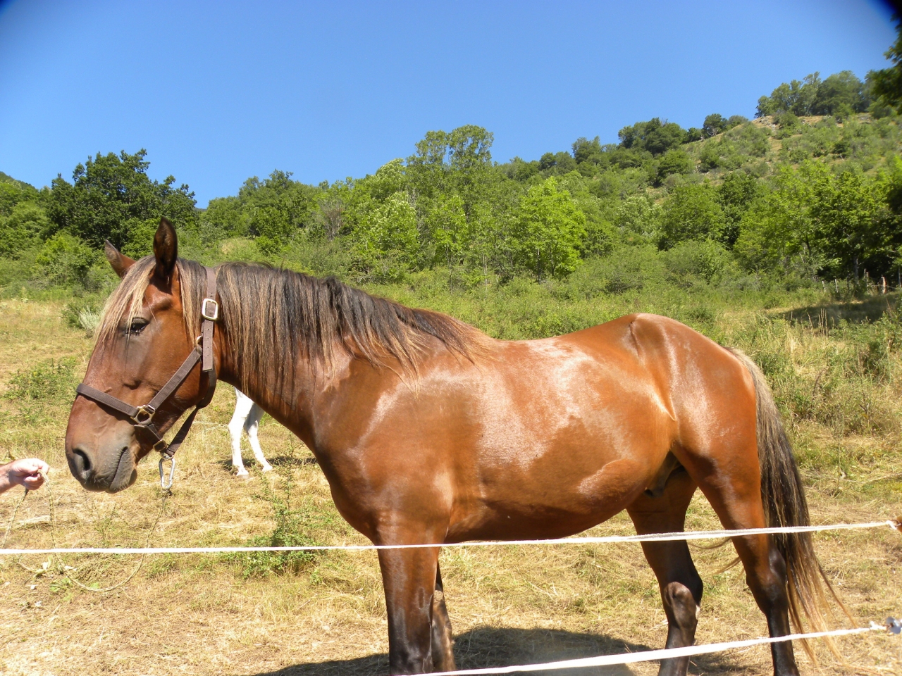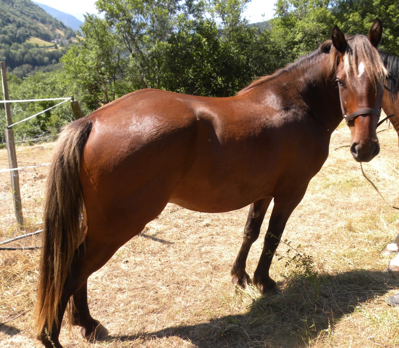 | Dire merci | nonettecuirs Voltaire SDE k.zel erzebeth Merci pour tous vos conseils !!! ![]() Mais je n'arrive pas à avoir une décision objective ( j'ai vraiment envie, mais je freine tous çà pour essayer de prendre LA bonne décision en fonction de mes souhaits mais aussi de ce qui est le plus raisonnable et sécuritaire, faire ou ne pas faire, telle est la question... )Pour atteler avec la jument de mon voisin, pour le moment, c'est foutue, il l'a mise à la retraite ( boiteuse ) Je suis tombée sur une annonce mais à presque 3h de chez moi : ( juste pour voir si çà vaudrait le coups d'aller le voir quitte à faire faire son débourrage par un bon pro, un truc de 1,70m, c'est pas pareil que l'âne de mon homme qui fait 1,15m et à un caractère exceptionnel... ) Un 4 ans croisé comptois ( par la mère, le père, cheval de selle OI ), autour de 1,70m au garrot qui suit depuis petit en rando, connait voitures, chiens, troupeaux de brebis, à tiré du caractère comptois, sympas, calme, proche de l'homme, suit l'homme comme un chien d'après le proprio. Pas de soucis de séparations si besoin. Accepte selle et filet, est longé mais ce n'est pas encore parfait. Vue son caractère, Il avait projet de l'atteler par la suite. Parage par maréchal ferrant OK. Le proprio le vend car il à 70 ans et à des anciennes blessures qui ressortent, il ne se sent plus, il à peur d'une mauvaise chute qui tournerait mal pour son dos, ce que je comprends bien... Le cheval est chez un ami, qui m'a gentiment fait d'autres photos ( j'en ai demander de face, profil, au carré... mais l'ami du proprio ne dois pas vraiment savoir faire pour voir les aplombs, c'est pas grave... ) deux photos de lui : ( date d'hier ) Vous en pensez quoi ? S'il à vraiment un super caractère ? Après, il n'est pas encore en pleine crise d'ados aussi... Mais si je décide de me lancer, qu'il s'élargit encore, je vais sans doute devoir changer mon van qui est un 1 place de 90 de large à l'intérieure et devoir faire gaffe au plancher qui, je suppose n'est pas fait pour une si grosse / grande bête...??? |