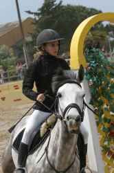 | Dire merci | peu etre folle sur les bords mais on assume !! aujourd'hui on a sauté ches moi avec ma gibou et ma copine et sa ponette! tention tention grande 1ere !! on a sauté en licol et a cru ... un vertical de 1m10 et un pti oxer de 1m70 de large !! gibou décolé et aprés chaque obstacle elle faisait la con (j'ai meme failli tombé mdr) bref super journé a aussi elle commence le pas espagnol monté !!!! |