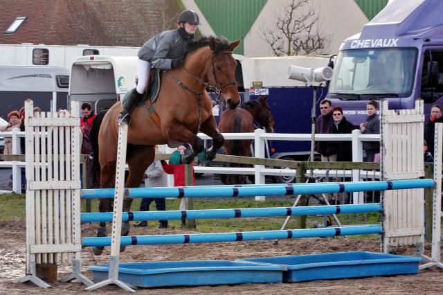 | Dire merci | Sur cette photo, c'est pas trop mal ! Tu as l'air d'avoir le regard loin, dos en place, contact avec la bouche, bon accompagnement ... Relèves peut-être un peu plus la tête ? Mais c'est trompeur avec le manteau ... Il faudrait d'autres photos ! Le petit hic, c'est comme beaucoup de cavaliers : dans ton bas de jambes ! Tu sers les genoux, donc, plus de fixité, et tes pointes de pieds, c'est le genre où tu peux mettre des chapeaux de cow-boys au bout, ça tiendra ! Non, plus sérieusement ... Pour le bas de jambes trop reculé, c'est du au fait que tu as les genoux trop serré. Je te conseille d'aller voir le post " conseils " ( un peu au-dessous de celui là ), dans lequel j'ai mis quelques exercices pour améliorer ce problème. Pour les pointes de pieds, pas de solutions miracle ... Il suffit de se concentrer et de faire l'effort ! Commence par bien les rentrer sur le plat si ce n'est pas le cas, à l'obstacle, c'est toujours plus dur ... Ca vient sûrement aussi du fait que tu serres trop les genoux : ça accentue le défaut ! Un petit conseil tout de même : pour rentrer tes pointes de pieds, tu peux te forcer à coller la tige intérieure de ton étrier. Normalement, en faisant ça, ta pointe de pied devrait venir se mettre en place. Mais attention, ça peut aussi avoir l'effet pervers de te serrer le genou ! Tout est donc question d'un bon dosage ! ![]() En espérant t'avoir aidé ... |
