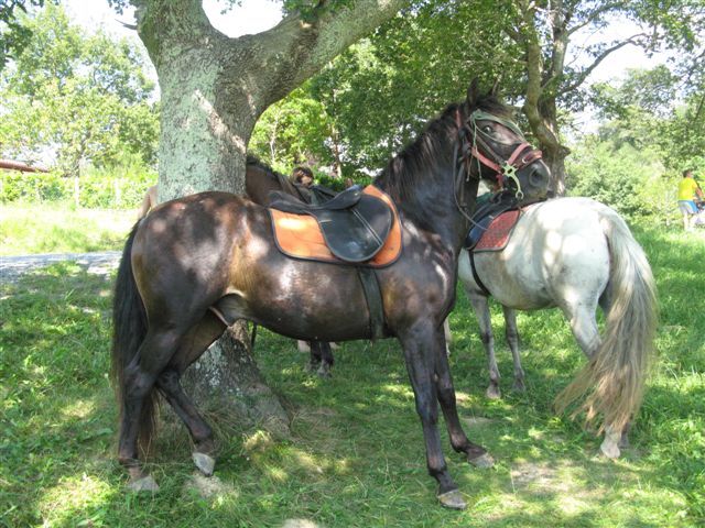 | Dire merci | ici à espelette : objectif Jara avec Blutch ! bon, c pas gagné; il dégouline de partout juste en allant au Mondarrain ![]() on est pas très haut pourtant ![]() argh il défaille... ![]() les piqures que je lui inflige et le produit passé tous les jours feraient ils effet ? on dirait qu'il a de la crinière sur cette photo... et même pas mal... j'aime bien avoir un cheval en bonne santé pour être dans des conditions de torture correctes ![]() une fois rentré à la maison, il est tellement ko qu'il va même pas rejoindre les autres ![]() qui se sentent obligés de faire la sieste avec lui, c beau la solidarité de chevaux torturés face à leur tortionnaire ![]() bon, je me mets aux photos de dimanche-lundi |