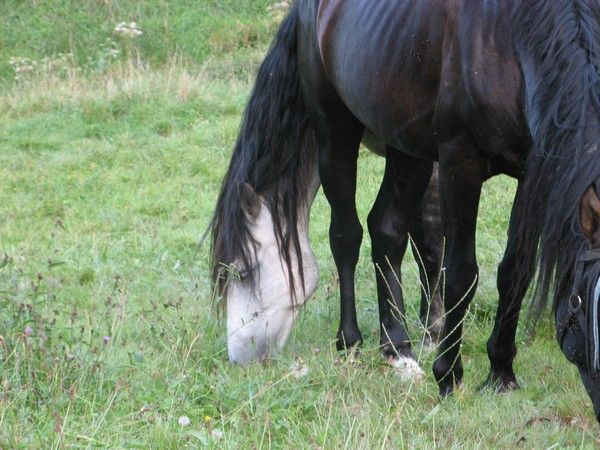 | Dire merci | salut ! hier balade entre tortionnaires... avec deux poulains (ou presque). Difficile bien sur de prendre en photo toutes les tortures tout en agissant, mais il y en a une que j'ai quand meme pu prendre, puisque pour manger notre pic nic on a attache nos chevaux... par la queue ![]() ![]() (juste quelques meches ca fait encore plus mal...) |