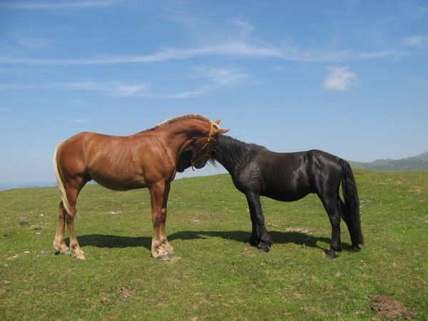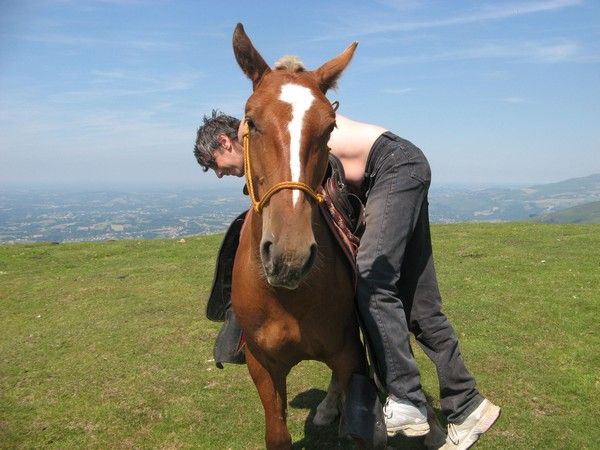 | Dire merci | Wawa apres cette experience se prend pour un adulte, il tente de se mesurer a l'etalon du troupeau de pottok... bien sur on les laisse en esperant une bagarre poulain geant contre etalon nain (et tres laid au passage). La camera etait prete !!!![]() |