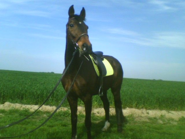 | Dire merci | Je vous présente mon 2ème cheval: Chautage. SF, 18 ans... en paraît 10 de moins! Cheval au passé ombrageux... Très très space Il est HYPER conditionné. Si on fait 8 tours de trot en longe à main droite, il s'arrête au 8ème à main gauche... Si on insiste pour un 9ème, ou si on arrête avant le 8ème, il chauffe . Brave, mais toujours sur l'oeil en extérieur... et très imprévisible!Du sang, en veux tu en voilà. A part ça, il est super brave, et donne tout ce qu'il peut. Ex cheval de B2, bon niveau de dressage. Assez de blabla... ![]() Place aux photos Sur les barres ![]() En balade ![]() pour d'autres photos aller dans mon espace perso ![]() |