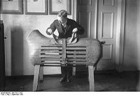 | Dire merci | Un cheval d'arçon est un agrès en gymnastique artistique masculine. Les mouvements de cet appareil sont toujours circulaires que ce soit le mouvement de base qui est un cercle sans attraits jusqu'aux ciseaux américains. wikipedia ![]() ![]() |