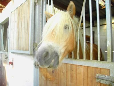 | J'aime beaucoup les Haflingers. Celui-ci n'est pas à moi, mais il appartient à mon C.E. Tao est un hongre qui doit avoir 10 ans ou+(limite beaucoup +, je sais pas). C'est mon blondinet un peu stupide et très très affectueux(souvent TROP affectueux ), mais qu'est ce que j'l'aime ! |