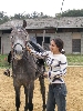 | Dire merci | en longe elle galope très bien ... A cheval : du pas elle n'y arrive pas encore ... elle prend le trot et coté droit elle se trompe de pied. Au départ du trot , oui elle a tendance a accéléré un peu quand je met mes aides en place. Sinon elle trotte sur la main et galope dans une bonne attitude ensuite. Main gauche elle se couche moins qu'a main droite quand je lui demande le départ . Mais je sent quand même qu'elle colle à ma jambe intérieur. Sinon j'essaye de la tenir avec ma rene extérieur, pas trop de main intérieur et je la pousse avec ma jambe intérieur et je recule très peu ma jambe extérieur. J'aimerai qu'elle arrive a partir en gardant son incurvation sur le cercle mais à chaque fois elle se couche à l'intérieur. Une fois le départ ok elle ne se couche plus. |