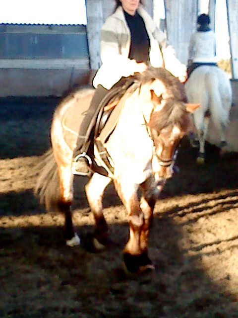 | Dire merci | Ce n'est ni moi ni mon poney mais voici Afrodite haflinger de 18ans (17ans et pleine sur la photo) c'est LA jument de mon prof, elle a été sa première et le seule qu'il monte encore ils ont fait énormément de concour quand ils était jeune on va dire et ils ont toujours tout gagner!Chez nous on l'appelle l'extra-terrestre, c'est pas possible que ce soit un cheval! |