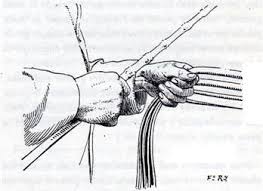 | Dire merci | Si tu tiens ta longe comme une rêne, tu sais utiliser ta main ... Comme si tu tenais une rêne. |