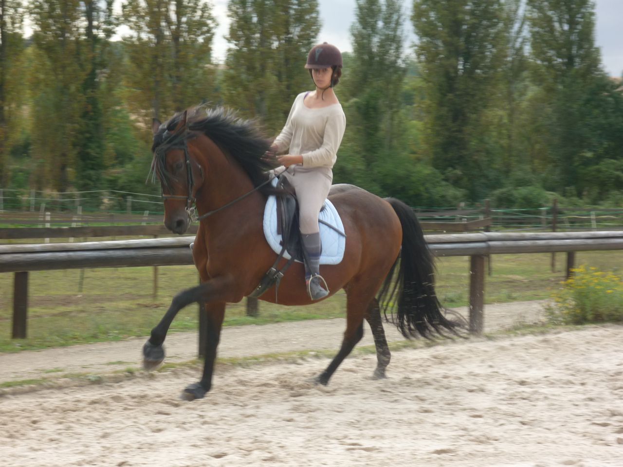 | Dire merci | Vachounette, les autres ont déjà tout dit, mais je pense que ça ira mieux le jour ou la selle sera plus en arrière et que tu te grandiras dans la selle, redresse toi et regarde ou tu vas ![]() Sinon, pour cette photo, des critiques ? ![]() Déjà, j'ai fait un gros progrès au niveau des pointes des pieds, avant, elles étaient comme vous dites "plantées das le cheval" là je m’efforce de gommer ce défaut, pas encore parfait, mais ça vient. Les étriers sont en "longueur" obstacle par contre. (J'ai sauté sur cette séance). pour les rênes longues, c'est normal Le galop étant une allure que nous travaillons pas depuis longtemps.Message édité le 09/05/12 à 13:42 |